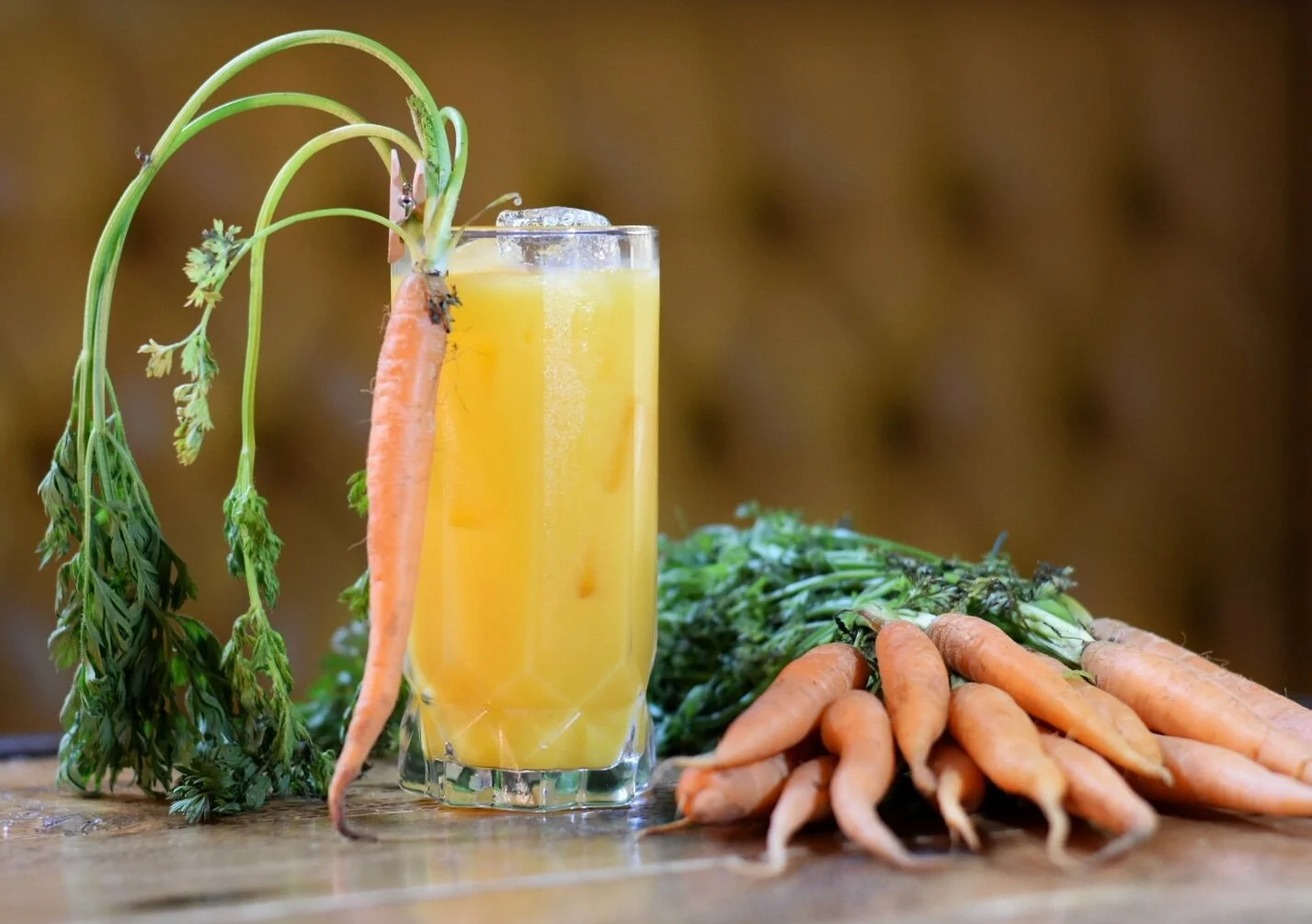 Try mixing carrots with aquavit. With carrot being a close relative to caraway, it makes them an unusual but delicious pair. A good place to start is carrot juice mixed with orange juice and aquavit. Like my above photo.