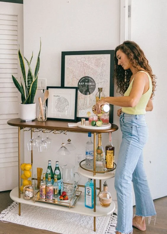 Now you have your base, a beautiful gold (but empty) bar cart. You now need to decorate it. After all, what’s a drinks trolley with no drinks?